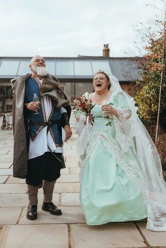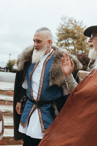 The bride was breathtaking in a custom-made fantasy gown, embodying a regal, ethereal grace. Beside her stood a groom and wedding party straight out of a Norse saga, clad in traditional Viking outfits. The attention to detail was incredible—even the one-year-old flower girl was dressed in tiny, authentic Viking garb!